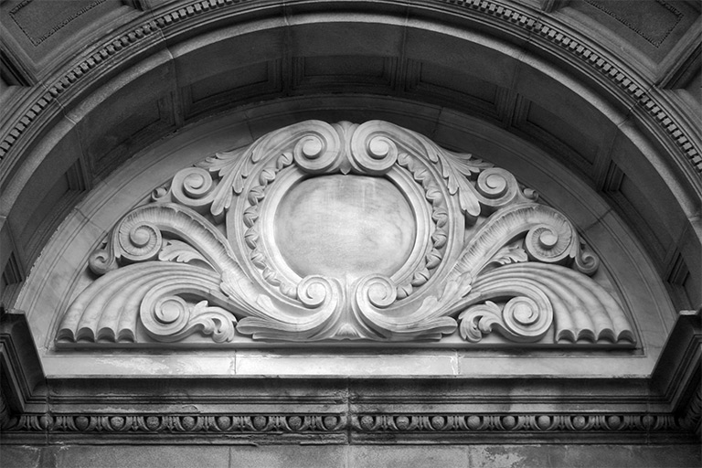 This is the fifth image in the "Stoned in the City" series that began Tuesday. Around the corner from Wednesday's watchers and beneath our view from yesterday, we have this bit of work above a large side door to the church. Not only are multiple architectural influences at work around this building, but there is a marvelous blend of materials used, seen here in contrasting stone colors. Fine carving here.